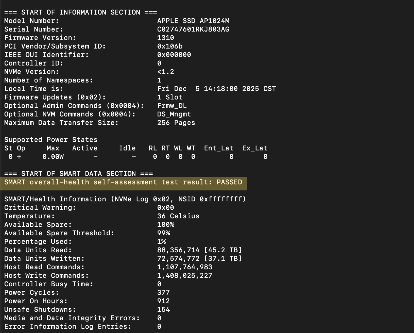 I. MacBook SSD 健康度自我診斷:smartmontools 數據深度解析與壽命評估