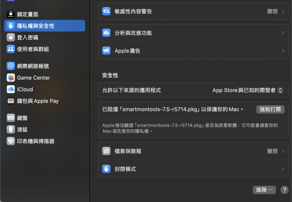 系統設定 → 隱私權與安全性 → 允許此 App
